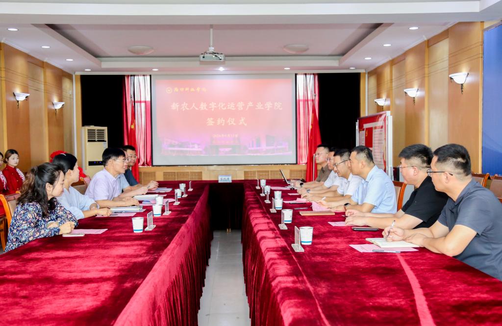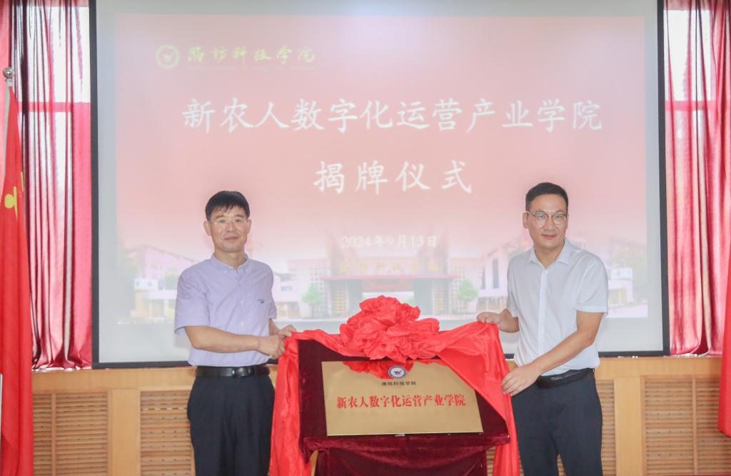 王海涛会长与张友祥副校长为新农人数字化运营产业学院揭牌