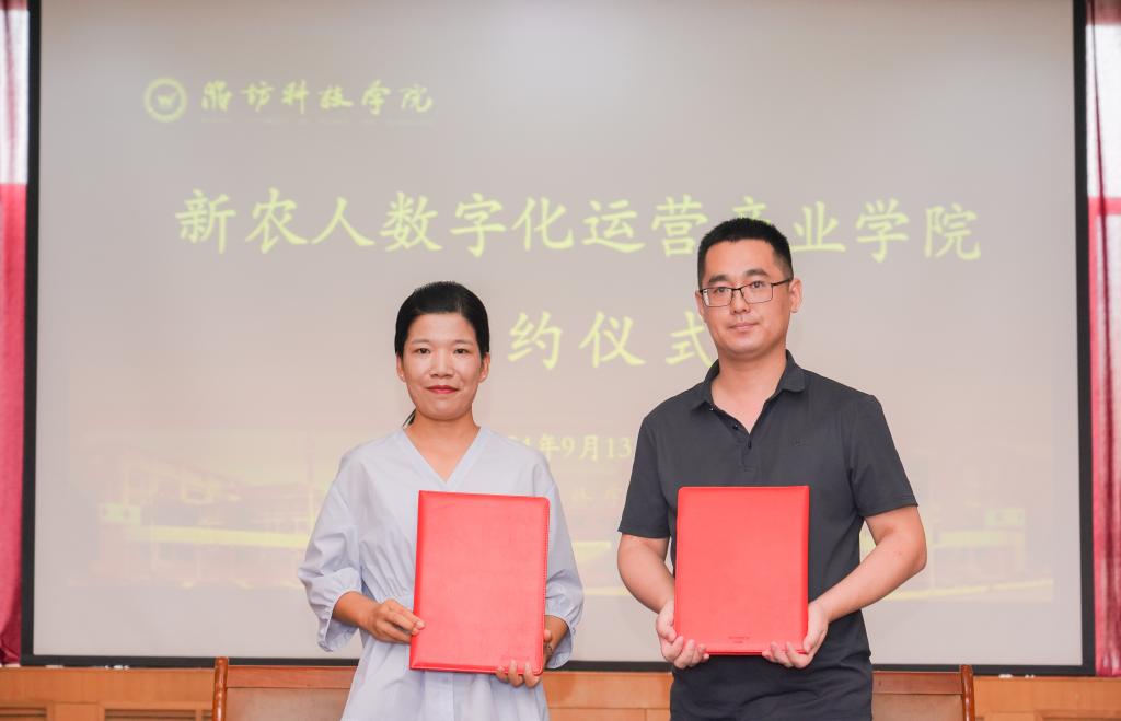 经济管理学院院长丁莹莹与寿光市人才发展集团办公室主任贾小亭签署产业学院合作协议