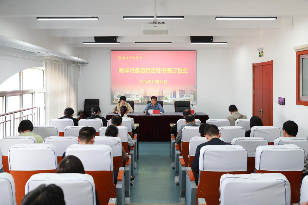 10月16日下午,潍坊科技学院教学工作会议暨教学任务目标责任书签字仪式在办公楼六楼北会议室举行。