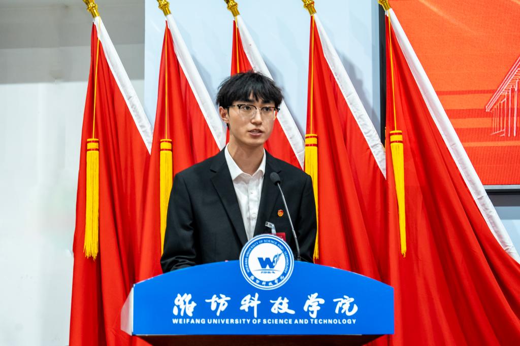 伴随着悠扬悦耳的校歌声,潍坊科技学院第七次学生代表大会渐进尾声。2024届学生会主席团代表徐国昌在闭幕式上作表态发言,他表示在接下来的学生会工作中,将团结带领全校各级学生会组织在规范学生会管理、提升服务能力和水平、纵深推进学生会改革三个方面持续发力。徐友信致闭幕辞,他希望全体代表把大会的精神,迅速全面地传达到广大同学中去,号召全体潍科青年以此次大会为新的起点,胸怀发展大局,争做时代先锋,勇敢地肩负起历史重任,信心百倍地完成大会确定的各项任务,为学校建设贡献自己的力量,谱写出更加辉煌灿烂的青春篇章。