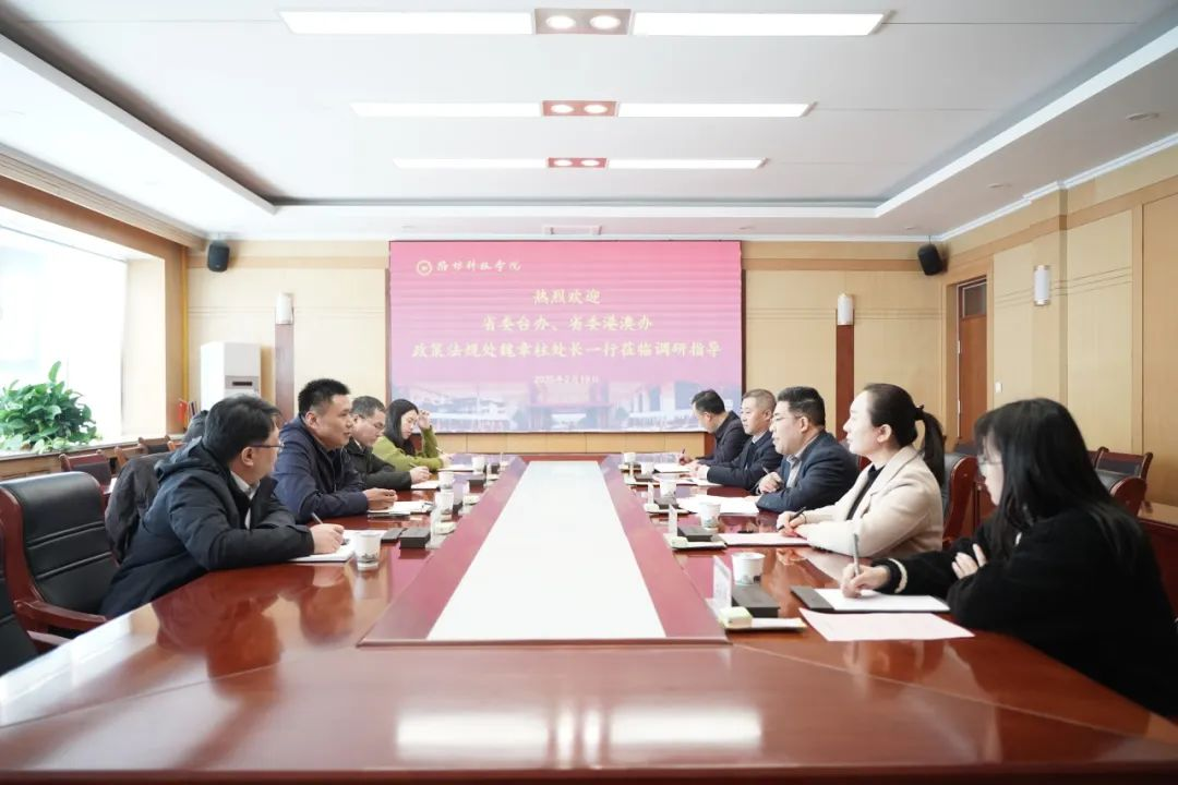 2月19日,省委台办、省委港澳办政策法规处处长魏章柱一行在潍坊鲁台会服务中心投资服务二处处长吴长栋,寿光市台办、港澳办相关负责同志陪同下,到潍坊科技学院调研台港澳同胞任教情况。我校党委副书记杨专志,人事处副处长(主持工作)桂化德,统战部副部长张晓亮及部分台湾教师参加座谈。