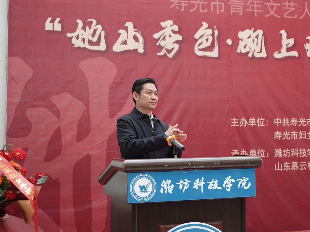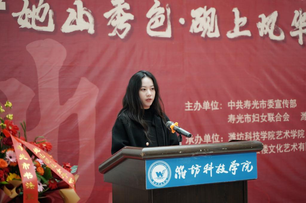 开幕式上,潍坊科技学院党委副书记杨专志发表致辞。他在介绍了学校的发展情况后,强调此次女子砚雕艺术展对文化传承、女性赋能以及校园文化交流有重要意义。他表示,学校高度重视文化艺术类学科的建设与发展,希望广大师生以此次活动为契机,不断加深对中华优秀传统文化的认识与理解,提升艺术修养与创新能力,为弘扬中华民族优秀传统文化、推动文化艺术事业发展贡献自己的力量。