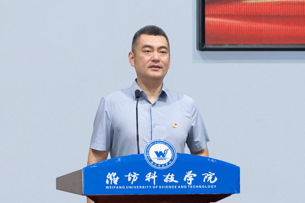仪式最后,孙宝国为校级重点团队代表授旗。这面旗帜不仅象征着使命的传承,更标志着潍坊科技学院2025年大学生暑期“三下乡”社会实践的征程正式扬帆起航。
