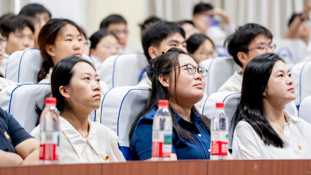上午大会直播伊始,现场气氛庄严肃穆。团员青年们身着整齐服装,坐姿端正,全神贯注地注视着屏幕。当礼炮轰鸣、国歌奏响,大家自发起身肃立,神情庄重地唱响国歌;在重要讲话环节,同学们认真聆听要点,深刻回顾80年前那段烽火连天、救亡图存的壮烈历史,深切感悟中国人民在抗日战争中展现出的“天下兴亡、匹夫有责”的爱国情怀,“视死如归、宁死不屈”的民族气节,“不畏强暴、血战到底”的英雄气概以及“百折不挠、坚韧不拔”的必胜信念。受阅部队阵列严整、步伐铿锵,国产现役主战装备依次亮相,战机翱翔长空划出和平航迹,震撼的画面让同学们的自豪感与使命感油然而生。