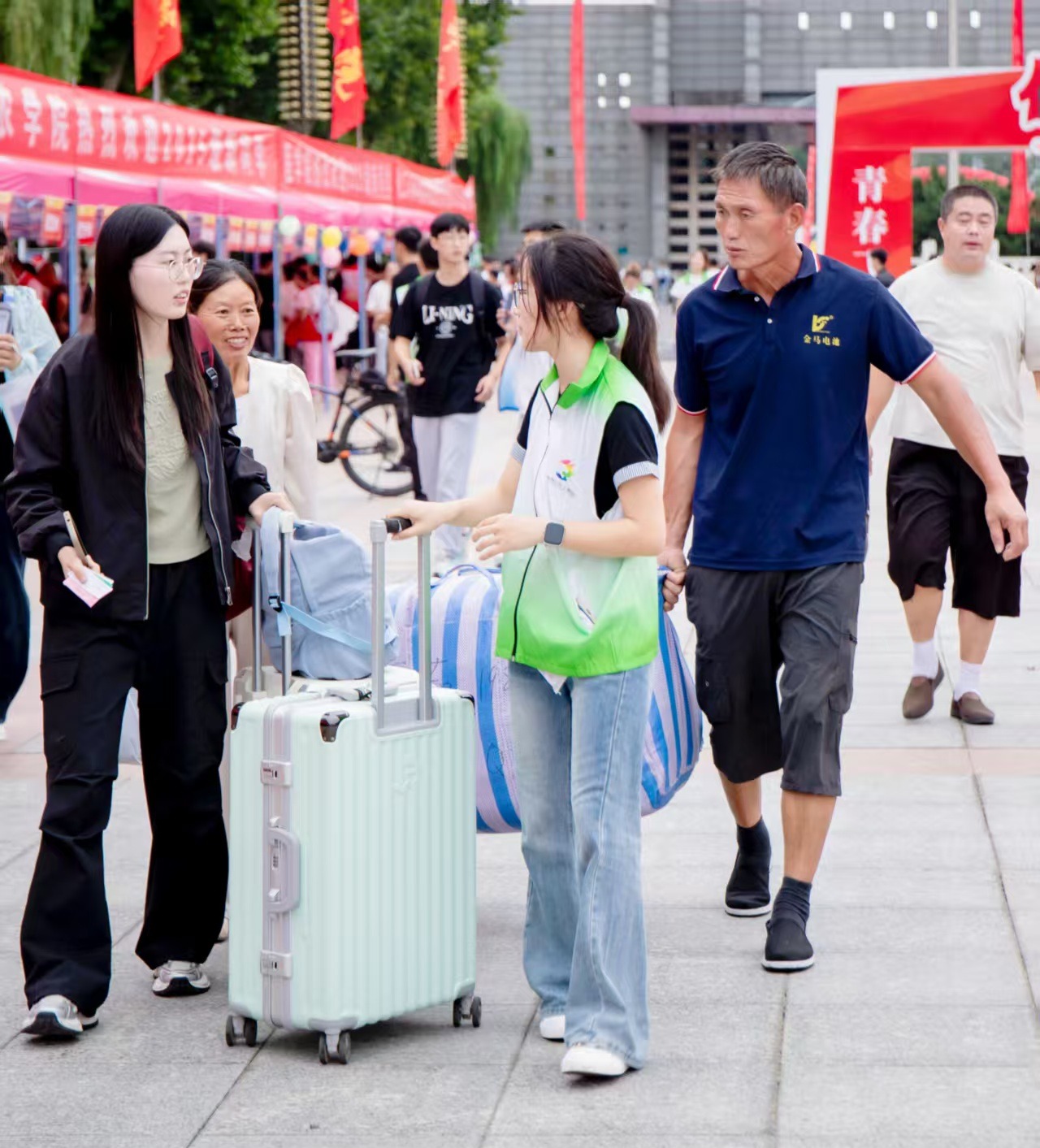 在迎新过程中,志愿者们成为校园里一道亮丽的风景线。他们早早来到岗位,身着统一服装,热情地迎接每一位新同学。从帮助搬运行李,到引导新生完成报到流程,再到介绍校园生活的点点滴滴,志愿者们用真诚的微笑和贴心的服务,让新生们感受到了家的温暖。一位来自远方的新生家长感慨道:“孩子第一次出远门,本担心会不适应,看到学校安排得这么周到,志愿者们这么热情,我们心里踏实多了。”