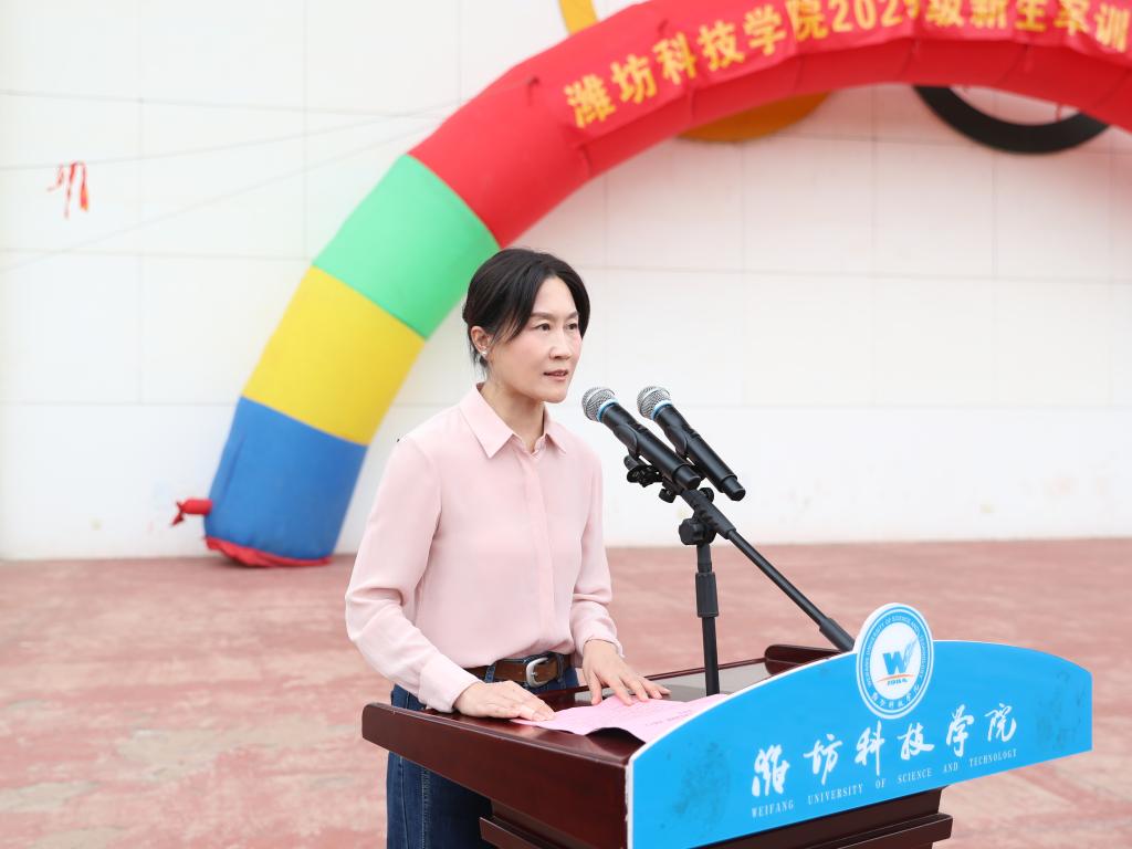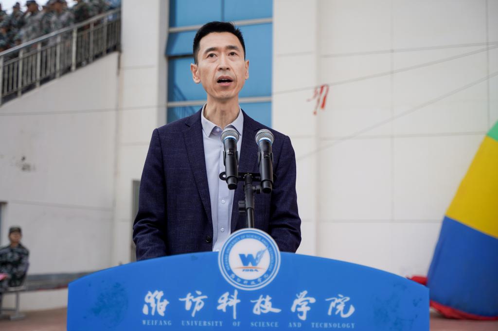 金秋时节结硕果,军训砺炼展锋芒。9月28日,潍坊科技学院2025级新生军训总结表扬大会在西运动场举行。校党委委员、学工处处长孙宝国 ,学工处,团委及各二级学院学生管理干部、辅导员与全体2025级军训学生共5500余人齐聚一堂,共同检阅为期21天的军训成果,表彰先进典型,为新生们的大学第一课画上圆满句号。大会由学工处副处长兼机械与电气工程学院书记蔺鹏主持。