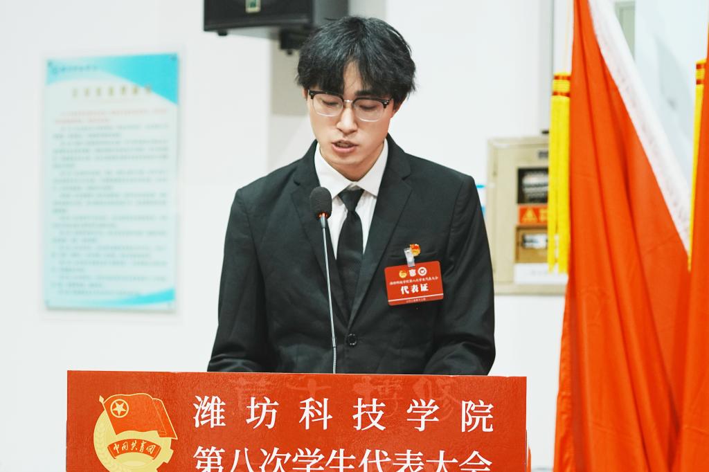会议听取并审议了题为《挺膺担当强使命 青春聚力启新程 在学校高质量发展中展现潍科青年的使命担当》的学生会组织工作报告、《潍坊科技学院学生会组织章程(修订案)》、《第八次学生代表大会提案工作报告》,选举产生了潍坊科技学院第八届学生代表大会常任代表委员会委员和新一届学生会组织主席团成员,并向全校青年学生发出《砥砺奋进 勇担使命 为建设区域性高水平应用型品质高校贡献青春力量》倡议。