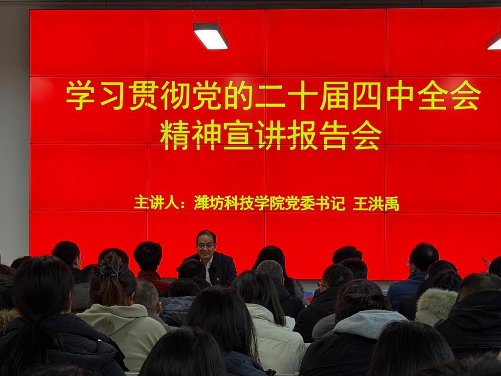 为全面学习贯彻党的二十届四中全会精神,凝聚奋进力量,推动学校事业高质量发展,12月3日下午,寿光市政协党组成员、学校党委副书记、校长付乐启在办公楼六楼报告厅作党的二十届四中全会精神宣讲。全体党员中层干部、党员进党校培训一班学员等200余人参加报告会。