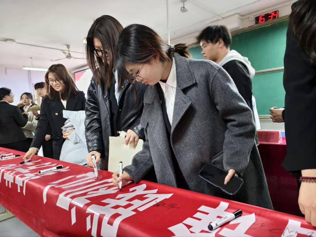 团总支书记高淋淋在讲话中指出,雷锋精神是永恒的精神财富,新时代青年要深刻把握其时代内涵,将雷锋精神融入日常学习与生活,在志愿服务中锤炼品格、增长才干,展现农科学子的责任与担当。随后,全体志愿者面向国旗庄严宣誓,用铿锵有力的誓言表达传承雷锋精神、投身志愿服务的坚定决心。仪式最后,参会人员在活动横幅上郑重签名,许下弘扬雷锋精神、践行志愿初心的庄严承诺。