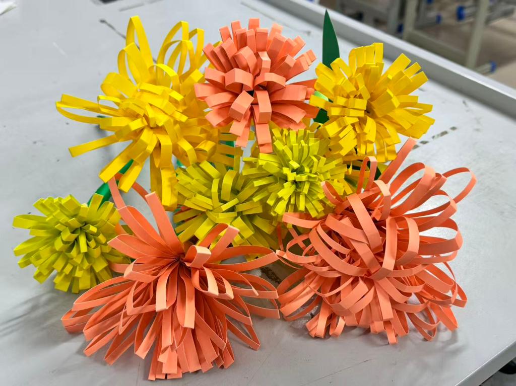 师生们前往寿光市烈士陵园开展祭扫活动,在烈士纪念碑前肃立默哀、致敬先烈,学生代表诵读祭文,党员师生重温入党誓词;清明主题纸鸢设计放飞活动同步开展,同学们将缅怀之情融入创意,制作并放飞承载追思的主题纸鸢。在竹编画创作活动中,同学们以竹篾为材,创作出兼具传统韵味与时代美感的作品;手工菊花制作活动里,同学们巧手制作仿真菊花,体悟慎终追远的文化内涵;艾草香囊制作活动打造融合专业设计元素与传统民俗特色的精美香囊。