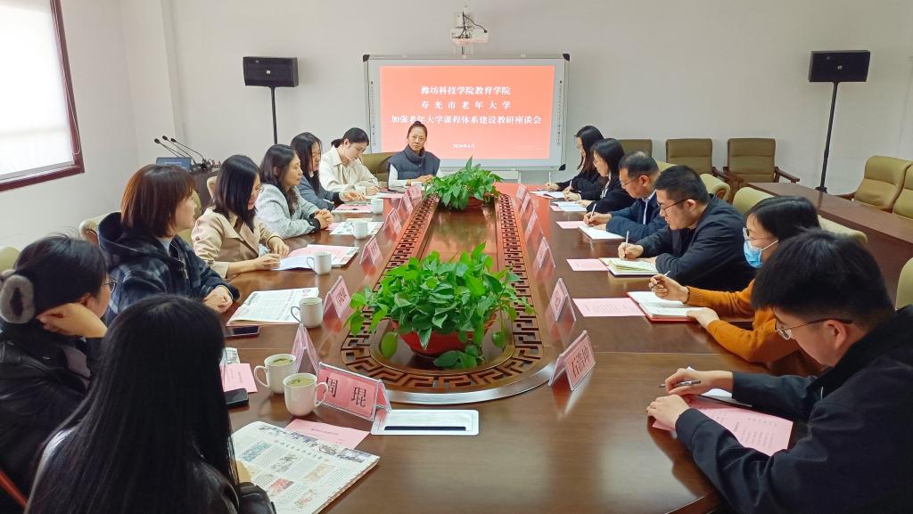 4月8日下午,教育学院副院长黄登翠及学院骨干教师代表组队到寿光市老年大学开展参观调研与教学研讨座谈活动。双方围绕老年大学课程体系建设、师资共建及教学资源共享等议题展开深入交流。