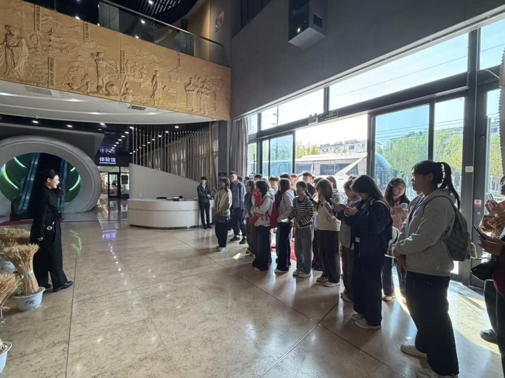 师生们依次参观了黄河三角洲小麦产业馆、中裕特色挂面生产车间、梨园养殖基地三大核心板块。在黄河三角洲小麦产业馆,同学们系统了解了中裕从小麦种植、精深加工到品牌运营的全产业链布局,深入学习了企业依托黄河三角洲地域特色打造区域农业品牌的成功经验;在挂面生产车间,同学们近距离观察了食品从原料到成品的标准化生产流程,直观感受了企业在生产管控、质量溯源、供应链管理等环节的专业运作;在梨园养殖基地,同学们实地调研了企业“种养结合、三产融合”的发展模式,重点学习了企业如何通过文旅融合、电商直播、农产品展销等多元业态拓展市场、打造品牌,为市场营销专业学习积累了鲜活的实践案例。