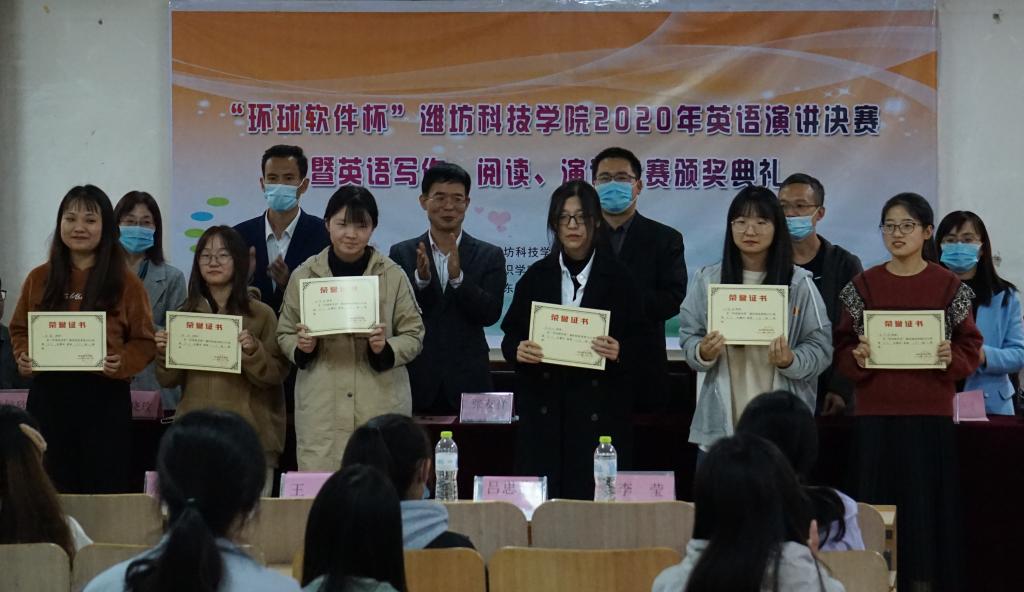 10月14日下午,我校举行“环球软件杯”英语演讲决赛暨英语写作、阅读、演讲比赛颁奖典礼,表扬奖励获奖学生、优秀指导教师。
