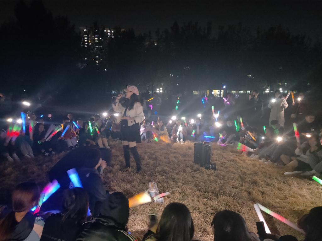 活动在经管学院半调乐队的歌声中拉开帷幕,哨声发出后,“荧光夜跑”正式开跑!学生手戴荧光环,挥舞荧光棒,迈着矫健的步伐,犹如一道炫丽的荧光带,划亮了潍科夜空。