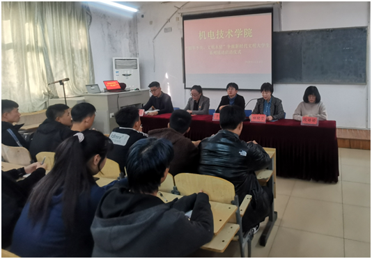 11月8日,机电技术学院举行“韶华不负,文明永驻”争做新时代文明大学生系列活动启动仪式,机电技术学院党支部副书记于莉、全体辅导员及学生代表参加。