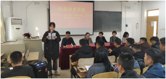 于莉就校园实际情况,指出了校园不文明现象及防范措施,并解读了机电技术学院“韶华不负、文明永驻”争做新时代文明大学生系列活动实施方案,号召同学们树立良好文明习惯。
